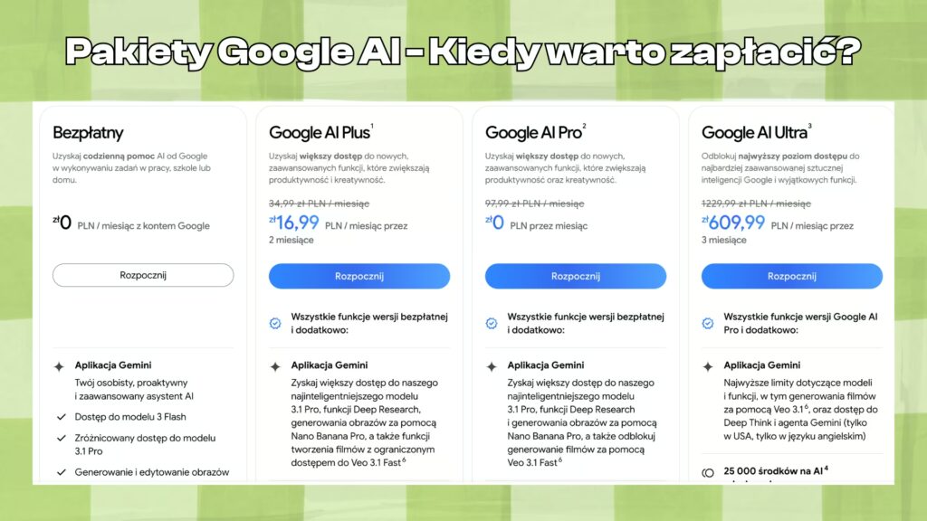 Google AI - czym różnią się pakiety AI?