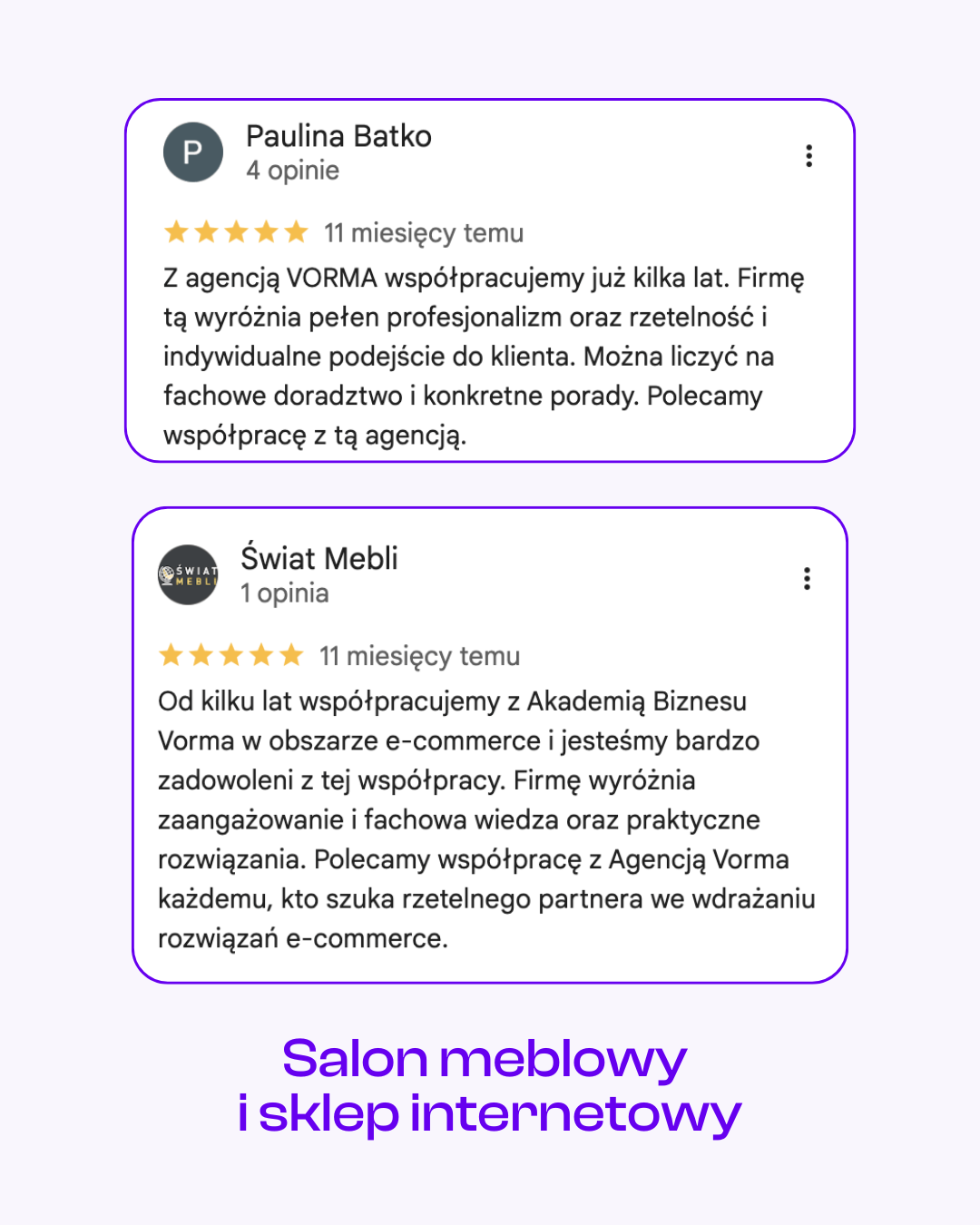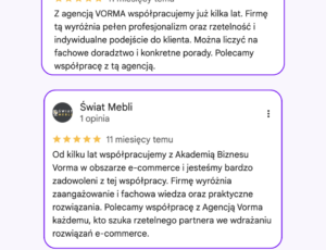 Jesteśmy agencją kreatywną ecommerce, która na co dzień wspiera firmy w rozwoju sprzedaży online. Tworzymy sklepy internetowe, realizujemy kampanie SEO, prowadzimy media społecznościowe i przygotowujemy treści sprzedażowe. Nasze doświadczenie w e-commerce przekładamy na praktyczne szkolenia dla firm i instytucji, które chcą rozwijać kompetencje swoich zespołów w obszarach copywritingu, narzędzi AI, social mediów i marketingu internetowego.